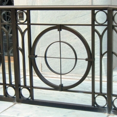 The lamps on the side and the front are decidedly Art Deco and modern. The balusters on the railings are a simple, repeating, geometric pattern. These are items for which there are not strong classical precedents, so the architects had a freer hand. |