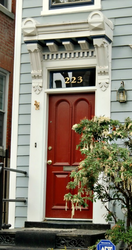 This door needs to be replaced, but I wanted to speak a word about the transom light on this and other doors in my collection. In Washington, D.C. it was quite the fashion to display the house numbers on the window above the front door. What a great tradition! It is easy to see and will shine out at night, when numbers are usually least visible. | |